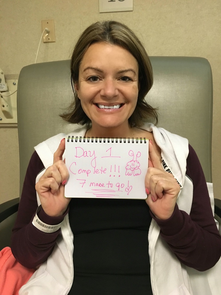 Finally, the beeper goes off.  YES A BEEPER.  We head back over to the infusion room and they are ready for me.   I was terrified and quite frankly I know Stefano was too.  The room was cold.  I really expected it to be different.  You would think they would find a place in the hospital with a view of at least a nice court yard with trees or something?  I sit in my seat which reclines.  This fabulous nurse brings me two heated blankets and I get comfortable.  This nurse Deb….she truly rocked!  She made me feel better.  I am guessing it was that obvious that I was scared to death and she kept saying things like “you need this to make you well and live a long life!” or “come on beautiful, you got this”.  Everything she said was positive.